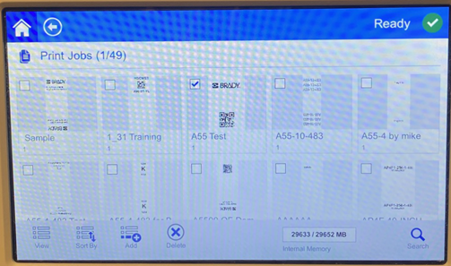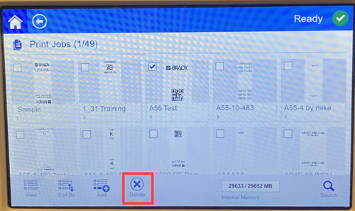 Deleting a job removes the label file from the printer’s memory or from the USB drive depending on the setting in File Location.