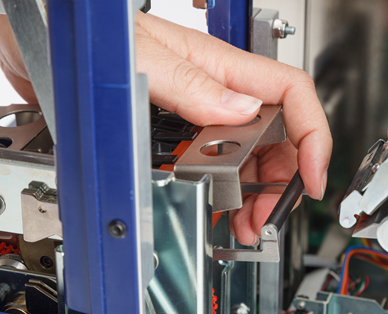 - Replace the retaining post, making sure that the end of the post goes inside the smallest coil of the spring and that the new flagging block is held tightly against the mounting surface.
