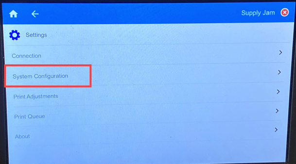 - Tap System Configuration.