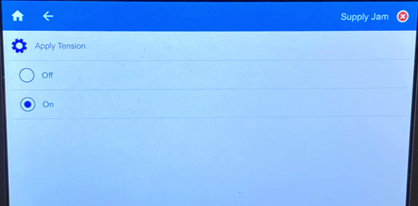 On: Recommended for normal operation. When on, the jaws on the printer clamp onto the wire and apply tension to achieve a smooth wrap.
