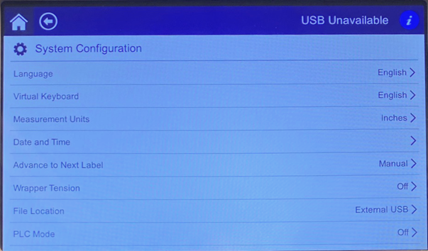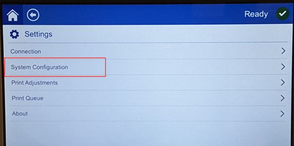 - The System Configuration screen displays.