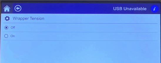 - Press Off or On to set the Wrapper Tension.