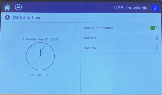 - Press the back arrow to go back back to the Date and Time screen.