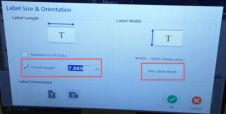 - It is recommended to set a fixed length rather than auto calculate the length. In this example, first set the length. Next, select the Set Label Width button to set stacking preference.