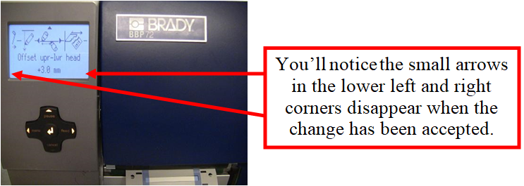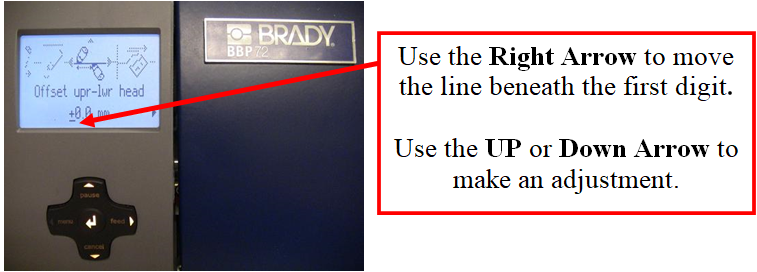 If you make an offset on the Printer itself, it will adjust the print on the top sleeve printed with the top printhead. The adjustment that works best on most labels is setting the offset to 2 or 3 mm.