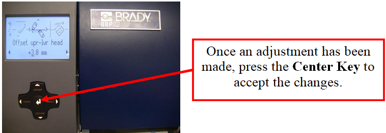 The BBP72 must be calibrated so the printer knows where the TOF (Top Of Form) is (top of the page, top of the label). The sensor must be centered over the rectangle cut out between the tractor feed holes (used in manufacturing) and the sleeves. You want to try making the data center as much as possible on the two different sides, but you will never get both sides to be the exact center at the same time due to the tolerance levels and mechanics of the two printheads.