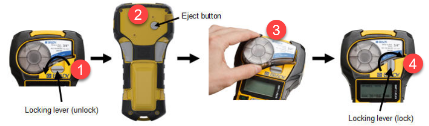 1. Turn the locking lever to the left to unlock the cartridge.