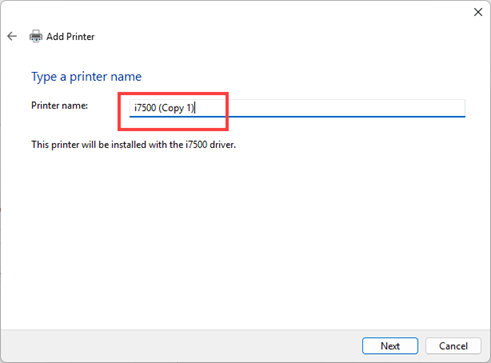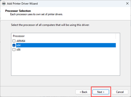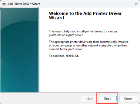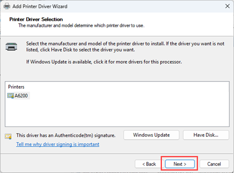 2. Navigate to the driver folder that includes the .inf file and select Next. This will install the driver for the printer.