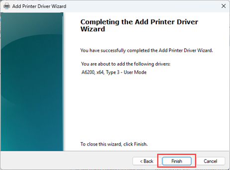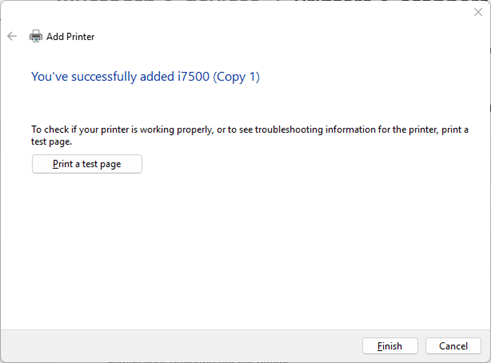 1. To verify the driver was successful, click Print a test page. Once the driver is finished installing, click Finish.