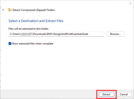 1. Click Browse to select the location of the extracted folder and select Extract