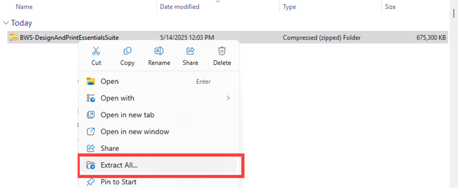 Note: You can also transfer this zip folder to portable storage (USB) to complete the installation process to an offline PC.