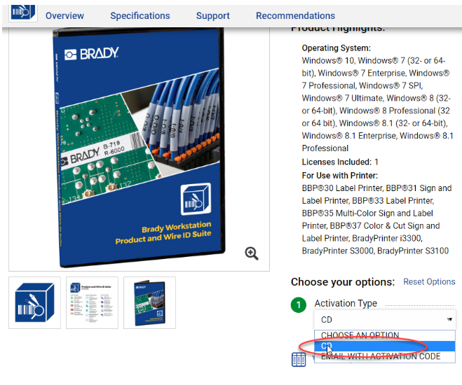 Brady Workstation suites can be purchased as a hard copy. The hard copy versions are currently selectable from drop down menus on the BradyID product page for a given suite.