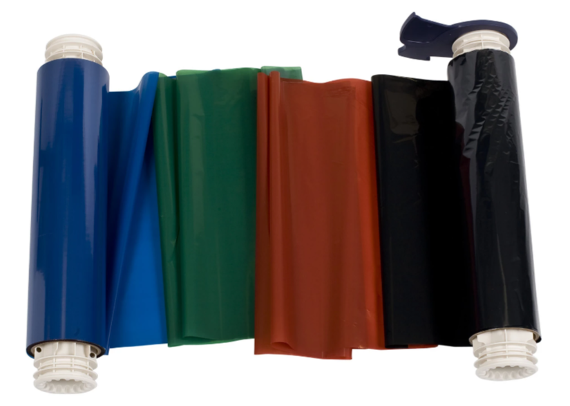 Mutli-color paneled ribbons contain 8 or 16 inch sections each containing a different color. These can be used to print multiple single colors required by a label, however excessive ribbon waste can occur depending on the design of the label. Label length is also restricted to the length of the panels (8" or 16").