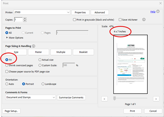 - If using Adobe, change the Page Sizing option to Fit.