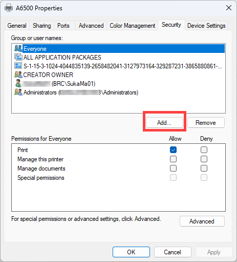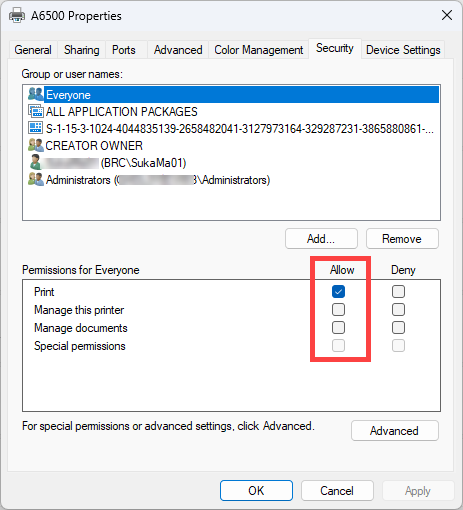 - The user account configured must be the same account configured for security access in driver properties: Printer Drivers - Enable Driver Security Permissions.