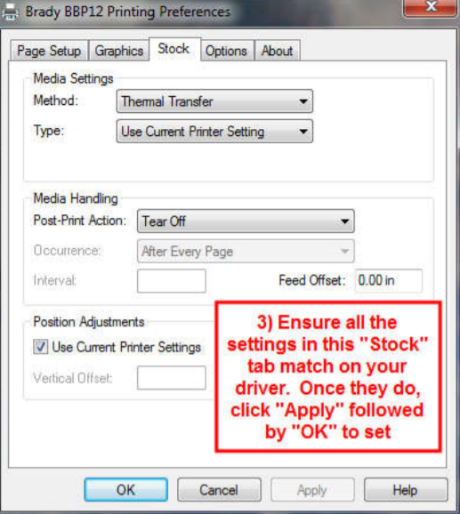 6. Select the “Stock” tab and ensure your driver settings match the image below. Once they do, select “Apply” followed by “OK” to apply the settings.