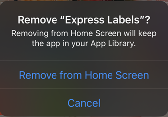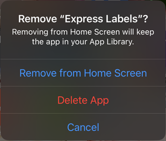 The following screen will display when an app can be deleted from the device instead of just the home screen.