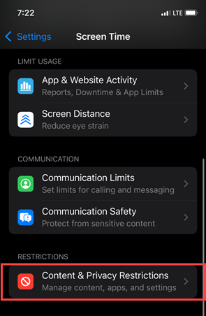 - Tap Content & Privacy Restrictions.