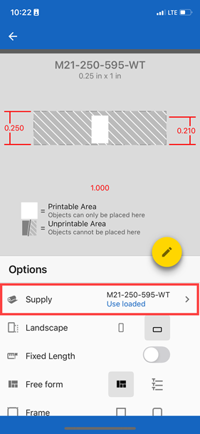 The Express Labels Mobile application automatically detects the label part when a printer is connected to the app. If there is not a printer connected to the app, it remembers the last part installed.