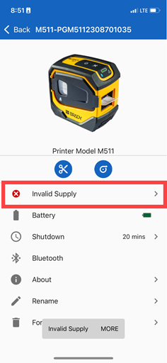 - The installed supply may not be able to be recognized by the printer. Go to the connected printer in the app to see the error on the printer.