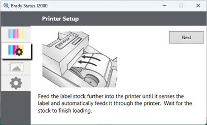 Feel the label stock into the printer so it grabs the materials. Click Next.