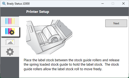 Pull the label stock guide open to insert the label stock. Click Next.
