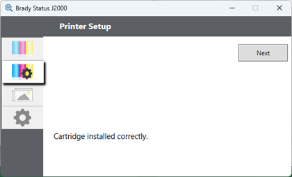 Cartridge installed correctly should display. Click Next.