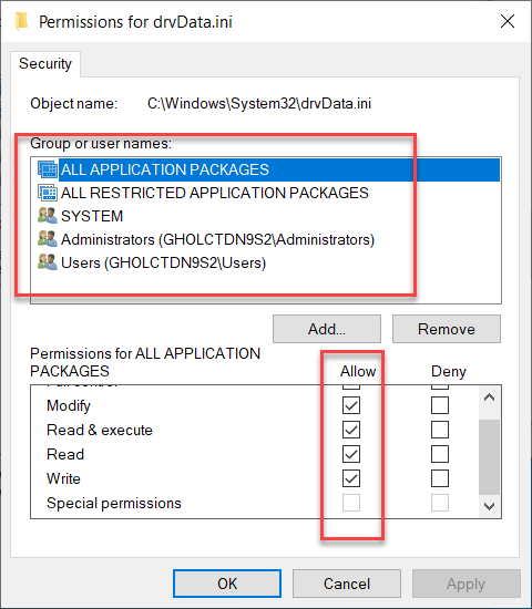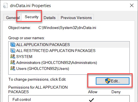 - Change access permissions so that you can modify and save the original drvData.ini file. Reach out to your IT Administrator if you cannot perform these steps.