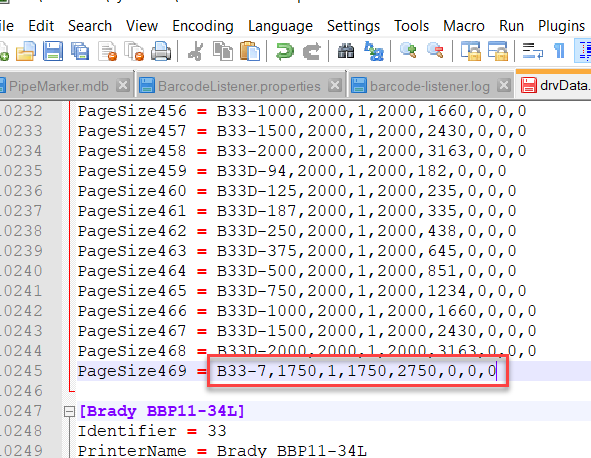 - B30-17-438 is a similar size die-cut at 2x1”, it’s also listed in the driver page size options. This means it can be copied and modified to create a B33-7 page size option.