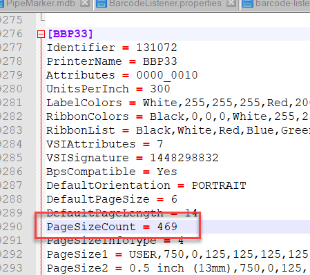 - Modify the PageSize number to the next higher number based on the preceding entry. In this example the preceding PageSize number is 468, so the next number will be 469.