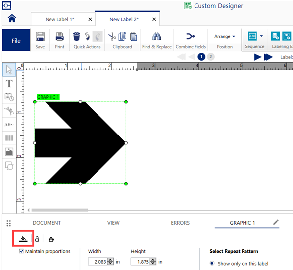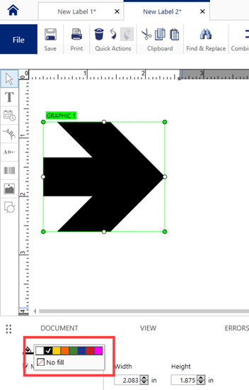 Color options for graphics will depend on the selected printer in Brady Workstation. If using an ink jet printer, more color options display and custom colors are available. If using a printer with a single color or multi-color ribbon, only a few colors are available.