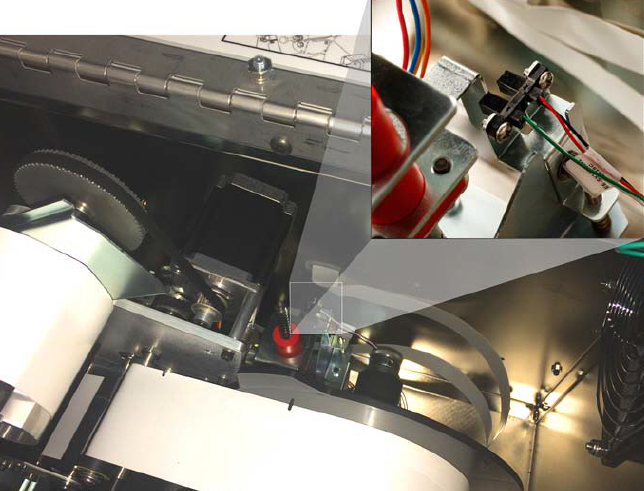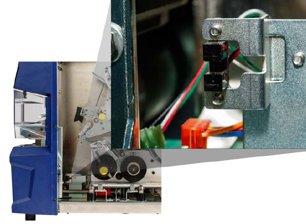 - Clean the label notch sensor with the cleaning swab (PCK-6).