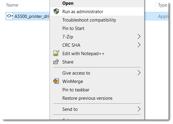 - Run the driver .exe as administrator.