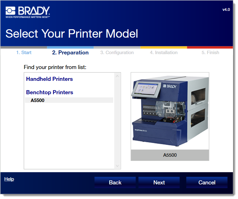 NOTE: The A5500 printer driver (for Windows) should not be used for this printer model if printing from Brady Workstation - Brady Workstation - Direct Print Compatibility The Windows print driver (and instructions below) should only be used if printing from a 3rd Party (non-Brady) app or Brady's Data Automation (which requires a Windows print driver). If you installed the print driver and having problems with Brady Workstation, uninstall the Windows print driver. Windows Printer Drivers - Full Driver Removal instructions.
