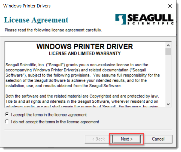 - Choose Install printer drivers in the Seagull Driver Wizard.