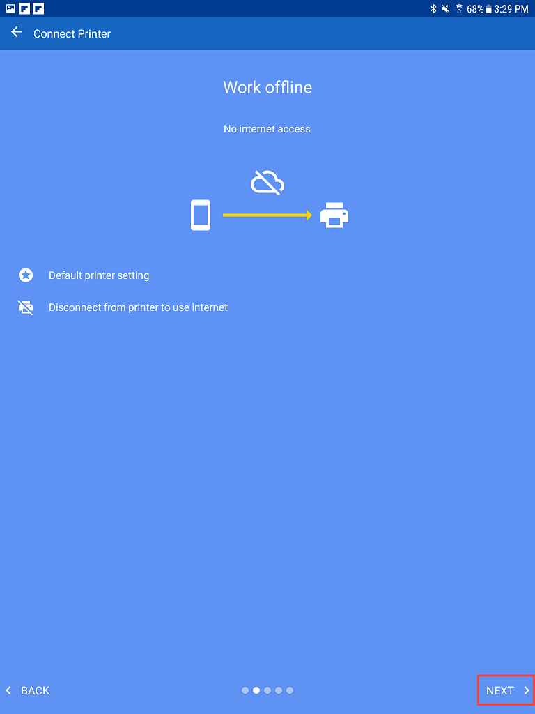 - Select next on the Work offline screen.