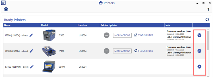 - Close Brady Workstation and reopen the software. The printer will no longer appear in the Printers app.