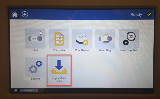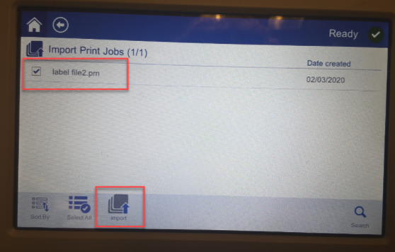 - Choose the .prn file on the USB stick, then choose to import. The .prn file can now be added to the list of jobs.