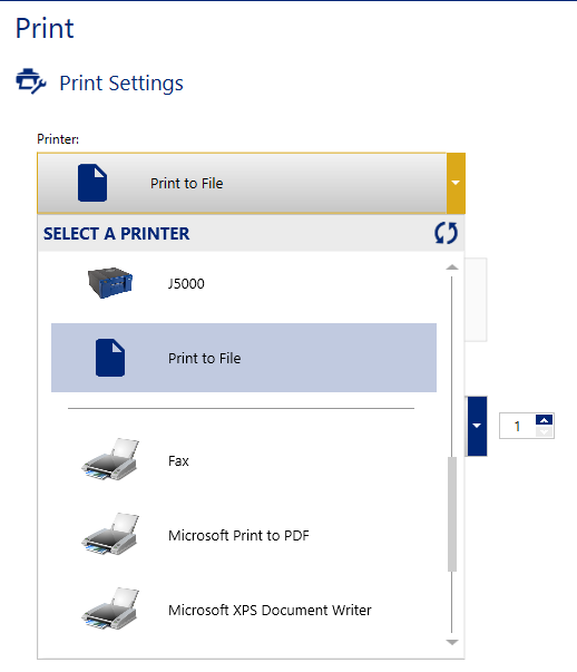 Note: If you do not see the Print to File option, then you did not create your label file with a supported printer (A6500, A5500, and A6200).