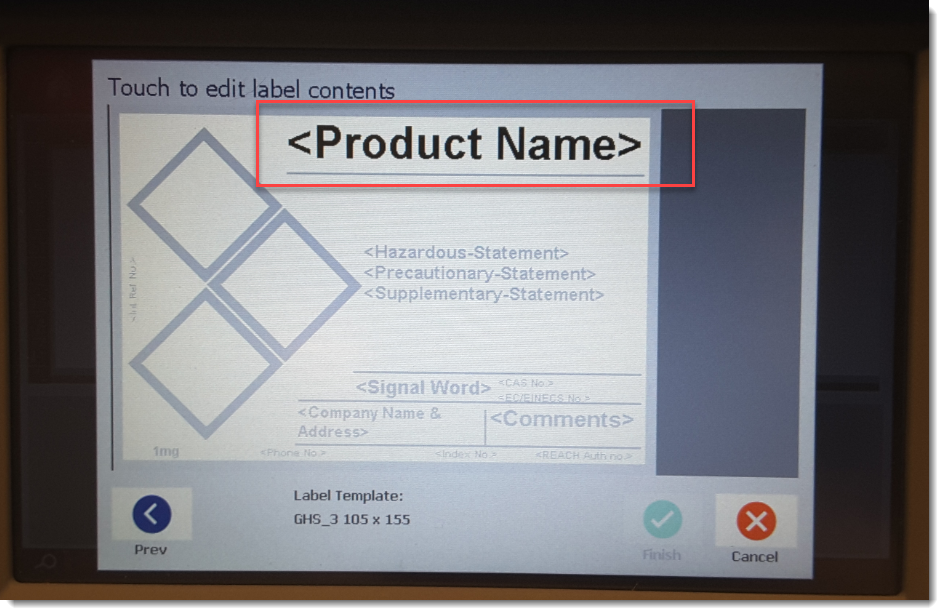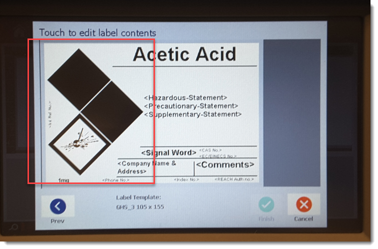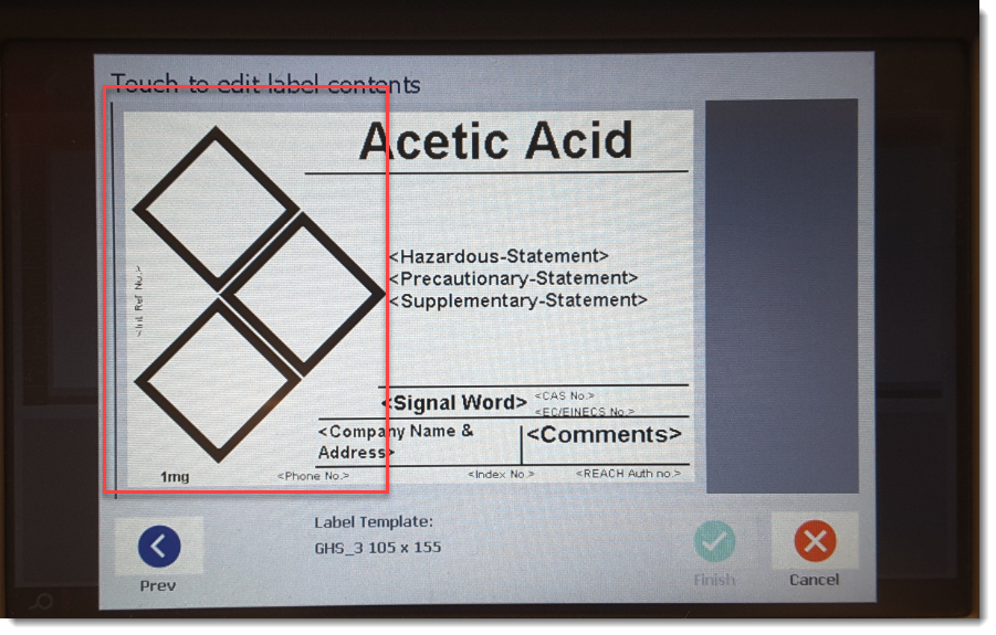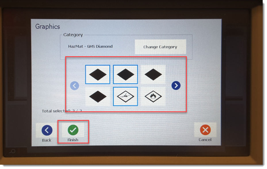 Note: You may need to use the right arrow to navigate to the black diamonds. The Finish button will be grayed out until all pictograms or black diamonds are chosen. View the OSHA website for information regarding OSHA requirements and black diamonds.