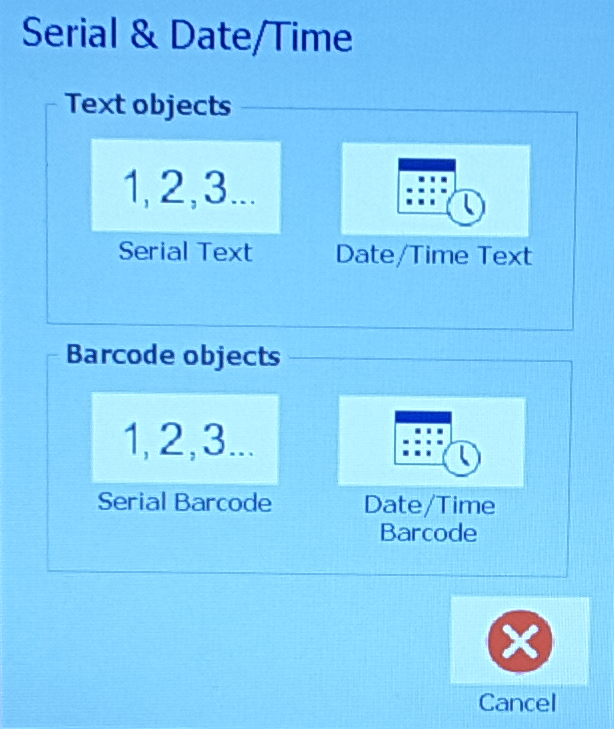 In the Add Object control panel, select Serial & Date/Time.