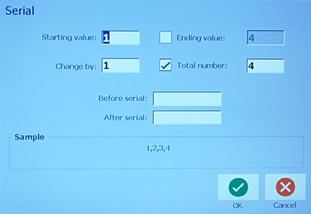 In the Serial dialog box, select the Starting value, and enter the starting value of the data to be serialized.