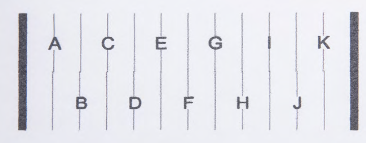 6. When the printer finishes printing, remove the paper from the tray. Examine the series of vertical lines, each labeled with a letter, to determine which line is the straightest.