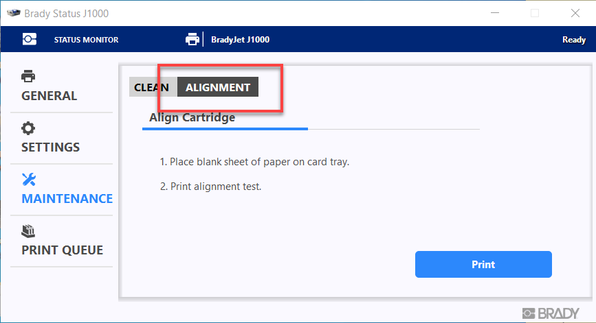 4. In the Status Monitor software, click Maintenance and then Alignment. 5. Click Print to begin the alignment test.