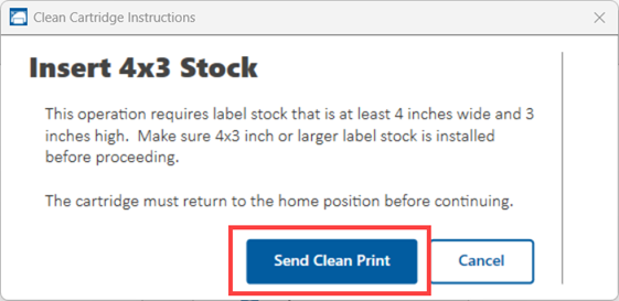 Note: If the printed label is not vibrant or has streaks through the label, the manually process to clean the cartridge outside of the printer will need to be completed.