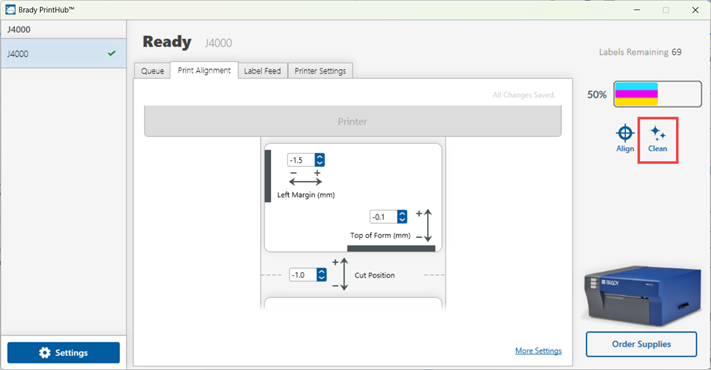 Clean the J4000 via Brady PrintHub