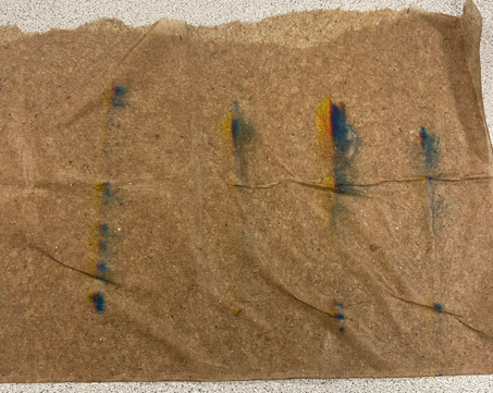 - Drag the cartridge down the paper towel towards you, repeating until all three colors are on the paper towel.