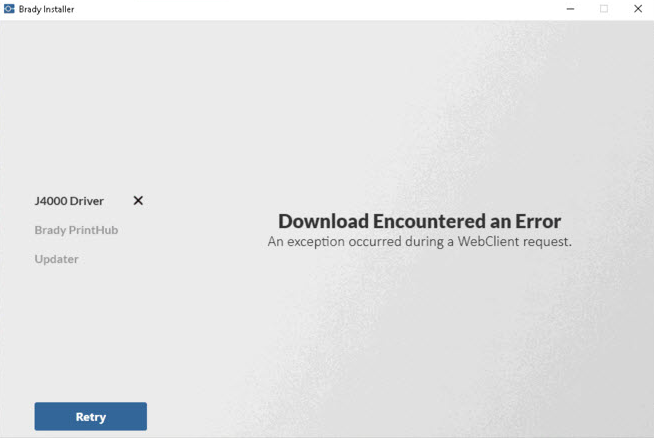 - Close the Brady Installer and retry the driver download.