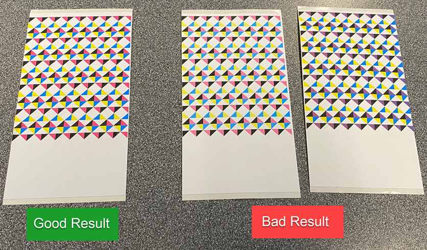 The label will print with pink, blue, yellow, and black. If the printed label is missing a color, the color is faded or the color does not match the label on the far left, additional troubleshooting is required:
