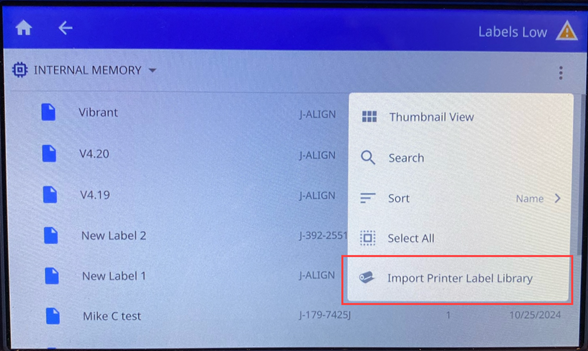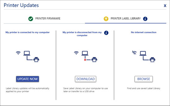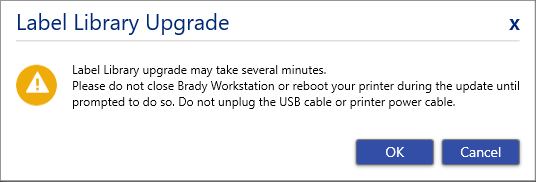 Update Label Library files periodically to make sure the printer has data for any new label supplies. Also, update if you have ordered a custom label supply from Brady and it came with new Label Library files.